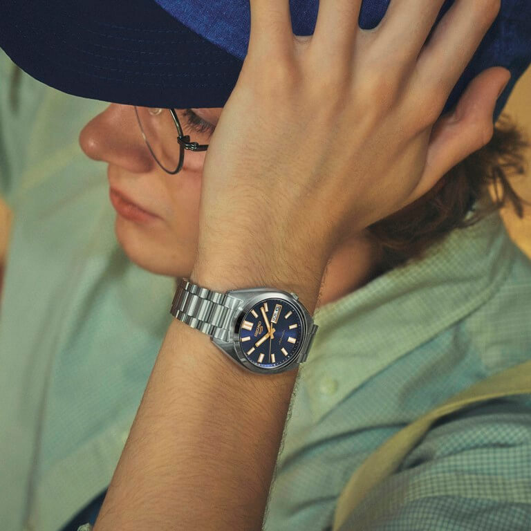 Denne model har både et sporty og ekslusivt udtryk, som bliver kombineret på flotteste vis. Uret, som er fra Seikos ikoniske SNXS-serie, har en changerende mørkeblå skive med flotte gyldne detaljer.