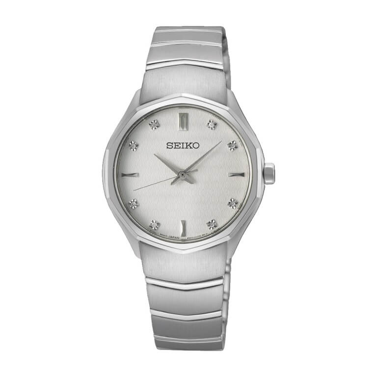 Seiko Classic Quartz dameur stål 5bar 30mm m. diamanter