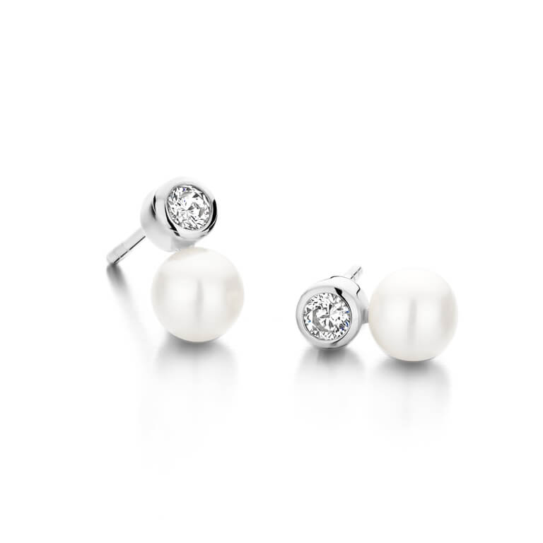 Tilføj et strejf af tidløs elegance til din smykkesamling med denne smukke Ava stud. Den fine ferskvandsperle skinner blødt med sin naturlige glans, mens den klare zirkonia-sten tilføjer et glimt af funklende luksus. Øreringen er lavet i genanvendt 925 sterlingsølv.