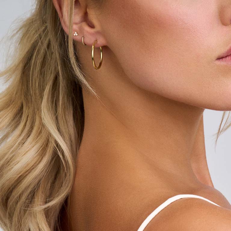 Spirit Icons "Balance" hoops i sølv, størrelse medium, på 21 mm er den perfekte kombination af elegance og enkelthed. Disse klassiske øreringe er fremstillet i smukt sølv, som tilføjer et tidløst præg til ethvert outfit. Deres rene linjer og minimalistiske design gør dem ideelle til både hverdag og festlige anledninger. "Balance" hoops er nemme at kombinere med andre smykker og kan bæres alene for et stilrent look eller sammen med flere øreringe for et mere iøjnefaldende udtryk.