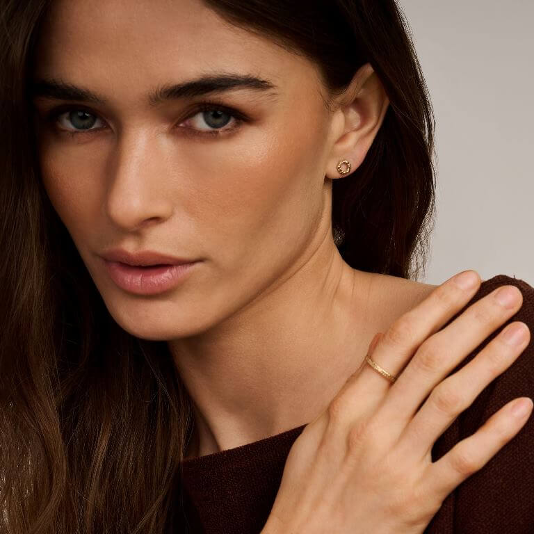 Canis-ringen i 18 karat forgyldt 925 sterlingsølv forener moderne minimalisme med et markant, organisk formsprog. De bløde linjer smyger sig om fingeren og skaber et stilrent udtryk, der både føles råt og raffineret. Et karakterfuldt design, der kan bæres alene eller kombineres med andre ringe for et personligt look.