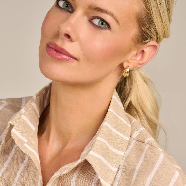 Emelda hoop har det samme karakteristiske chunky design som det tilhørende armbånd og ring, og udstråler moderne elegance med kant. Fremstillet i forgyldt genanvendt 925 sterlingsølv er den skabt til at fuldende ethvert outfit – et stilfuldt og alsidigt valg til både hverdag og fest.
