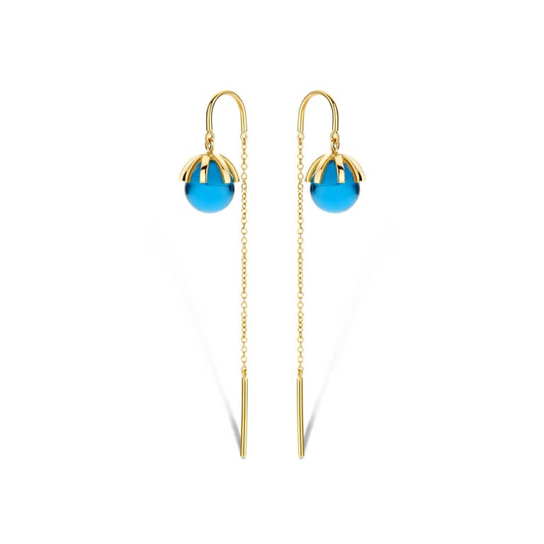 Emily øreringene er udført i forgyldt genanvendt 925 sterlingsølv med en fin blå zirkonia-sten (8 mm). Det er et par elegante øreringe med smukke detaljer i en fin kæde, der skaber et let og levende spil ved hver bevægelse. Det delikate design kombinerer enkelthed og raffinement, hvilket gør den til det perfekte valg, når du ønsker et feminint og iøjnefaldende udtryk.