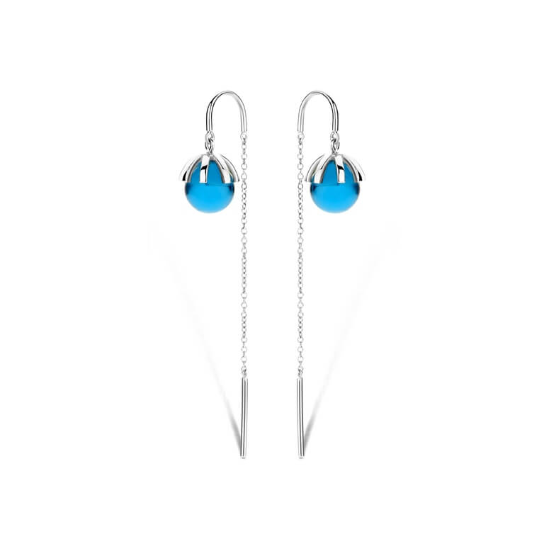 Emily øreringene er udført i genanvendt 925 sterlingsølv med en fin blå zirkonia-sten (8 mm). Det er et par elegante øreringe med smukke detaljer i en fin kæde, der skaber et let og levende spil ved hver bevægelse. Det delikate design kombinerer enkelthed og raffinement, hvilket gør den til det perfekte valg, når du ønsker et feminint og iøjnefaldende udtryk.