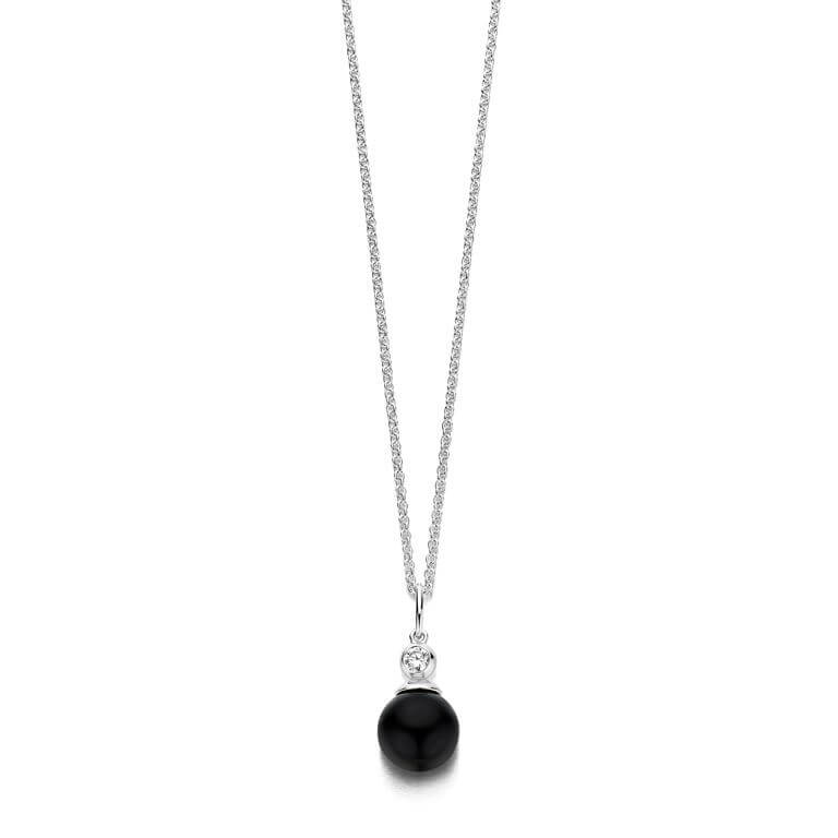 Spirit Icons Figaro halskæde sølv med sort sten 9mm (42+3 cm)