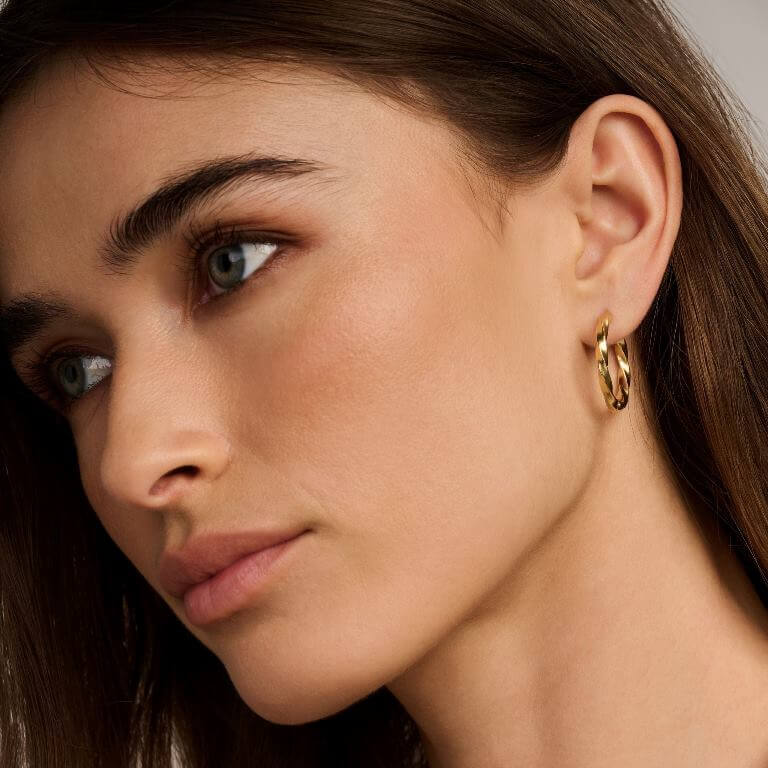 Linda Hoop 20 mm er en klassisk snoet og stilren hoop med et tidløst udtryk. Den enkle form og den perfekte størrelse gør den nem at style til både hverdag og fest – et sikkert valg, der fuldender ethvert look. De fås i tre størrelser og farver, og er lavet i 18 karat forgyldt 925 sterlingsølv.