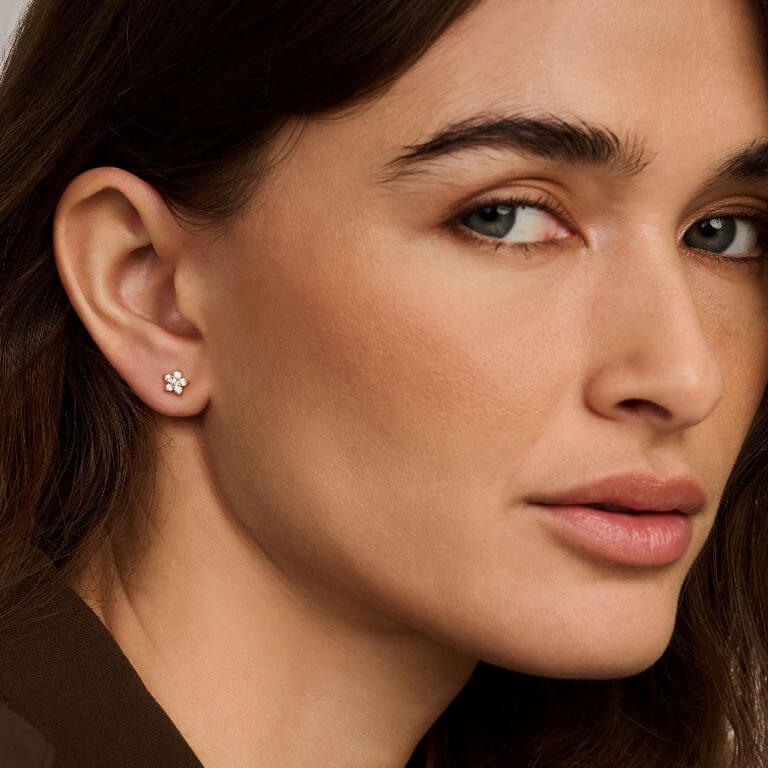 Ørestikken Midnight (S) er et funklende design, fyldt med glitrende zirkonia-sten, der fanger lyset fra alle vinkler. Den fine blomsterform kombinerer elegance og legende charme, hvilket gør den til et perfekt valg for at tilføje et strejf af glamour til ethvert look. Den er lavet i 18 karat forgyldt 925 sterlingsølv med zirkonia-sten og er 6 mm i diameteren.