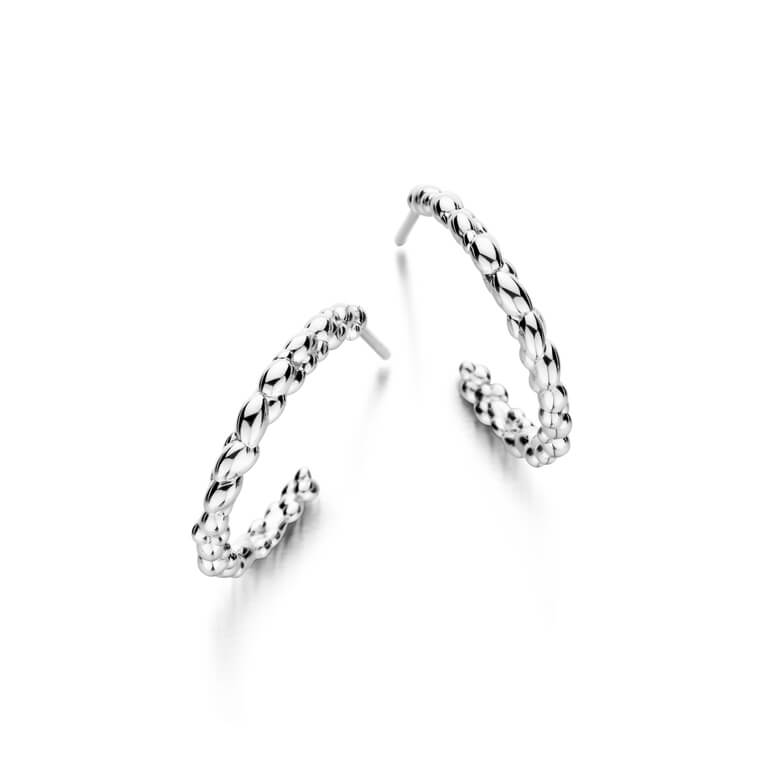 Inspireret af naturens former og teksturer bringer Pebbles hoop et organisk og råt udtryk ind i din smykkesamling. Den er fremstillet i rustik, genanvendt 925 sterlingsølv og har en ujævn, håndlavet overflade, der minder om små strandsten formet af tid og bevægelse. Denne hoop kombinerer det naturlige med det moderne og passer perfekt både alene og i kombination med andre øreringe. Et statement-piece, der oser af karakter og bevidsthed.