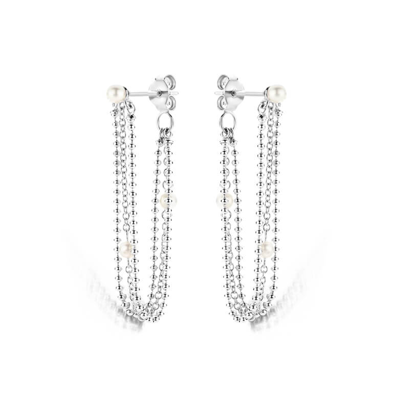 Denne ørering kombinerer elegant kæde og naturlige ferskvandsperler i et let og sofistikeret design. Den fine balance mellem det rå og det feminine skaber et unikt udtryk, der passer til både hverdag og fest. Fremstillet i genanvendt 925 sterlingsølv – en smuk og ansvarlig kombination af stil og bæredygtighed.