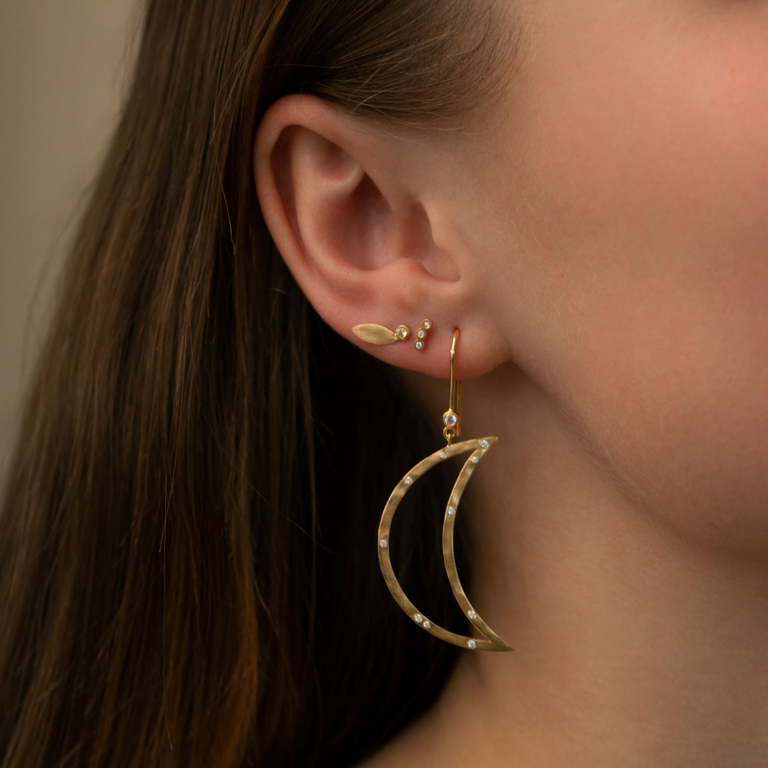 Flot måne ørering med ujævn overflade med små fine hvide zirkoner