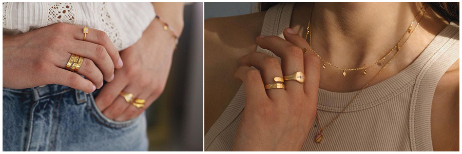 Hvis du er vild med det kreative, farver og anderledes er ringe fra Stine A er godt match. Ringene bliver designet i 925 sterlingsølv og i 18 karat forgyldt 925 sterlingsølv. Designeren Stine A Johansen har ikke kastet sig over mange ringe, men fokuseret på øreringe, halskæder, armbånd og LOVE boxes. Udvalget er derfor ikke det største, men ringene er smukke og unikke. Hvis du har forelsket dig i en ørering, et armbånd og halskæde, kan du fuldende looket med de fine forgyldte ringe.