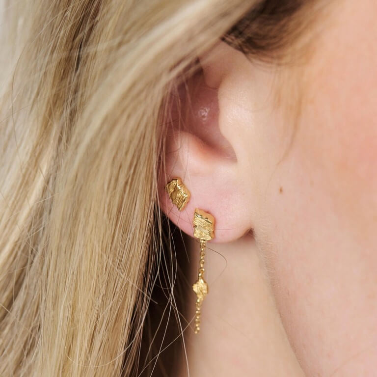 Ørestik inspireret af gletschere med en is-lignende tekstur, der kombinerer mat og poleret finish for et organisk look. Den fine kæde tilføjer bevægelse og giver et let, elegant udtryk.