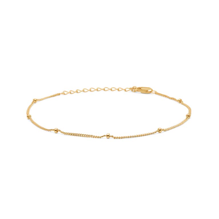 Designet er et klassisk armbånd med en slank kæde og små jævnt placerede blanke kugler. Kuglernes blanke overflade reflekterer lyset og giver kæden et levende, men diskret udtryk. Den lette struktur gør den enkel at bære alene, men også oplagt at kombinere med andre kæder.