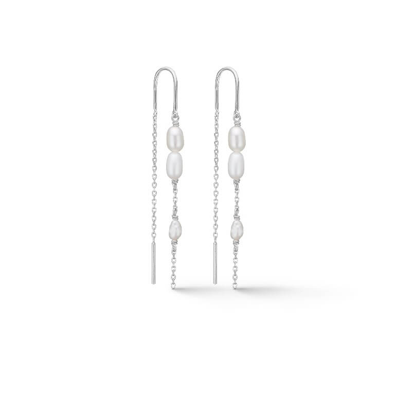 Designet er inspireret af klare vintermorgener, hvor sollyset får iskrystaller til at glimte let. Tre bevægelige perler på kæden fanger lyset diskret og giver smykket et roligt, let udtryk.