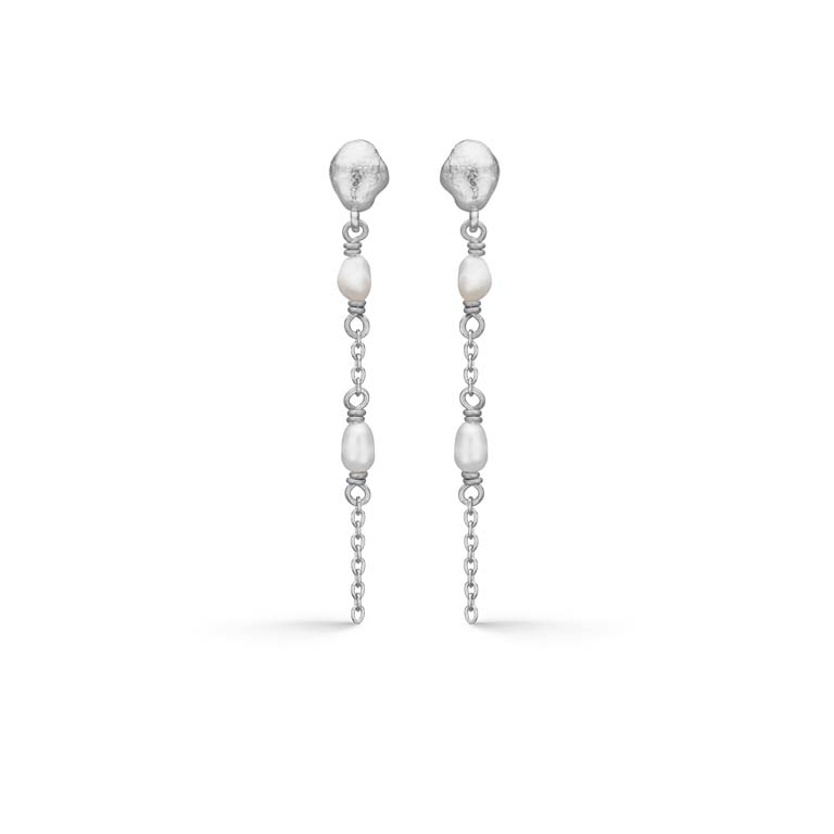 Designet er inspireret af frostklare vintermorgener, hvor iskrystaller glimter i solen. Den fine ankerkæde og bevægelige perler giver en let struktur og rolig glans – nem at bære både til jeans og aftenlook.