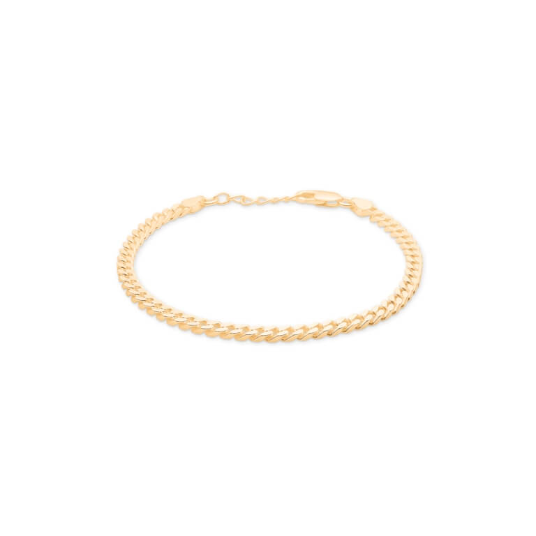 Armbåndet er lavet til at kunne bæres hver eneste dag i et materiale af rent sterling sølv, forgyldt i 18 kt. guld. Armbåndet udgør en klassisk blød panserkæde med skarpe linjer. Den perfekte go-to style som kan bruges til at skabe enten et simpelt minimalistisk udtryk for sig selv eller et chunky look i en stacking.