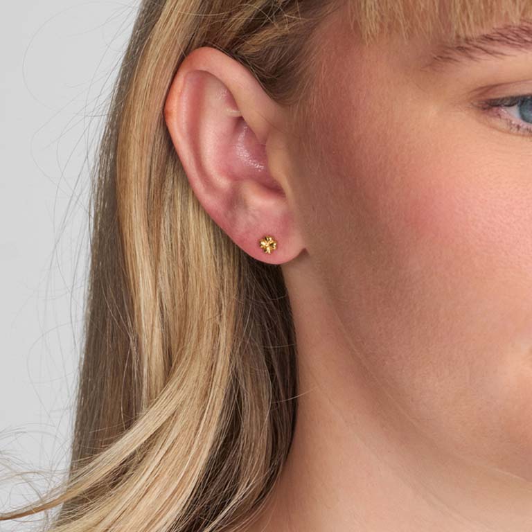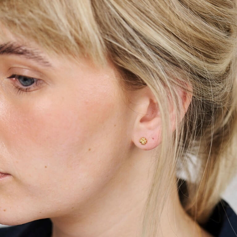 Lille kløver-ørestik med hjerteformede blade og en let tekstureret overflade, der giver et råt men feminint udtryk.