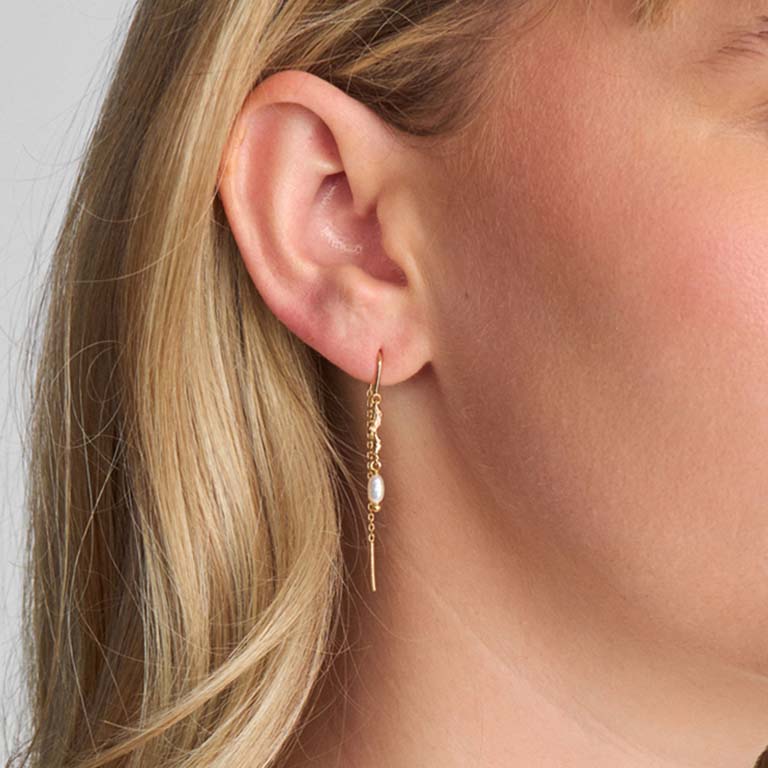 Tangled øreringene er lavet af 925 sterling sølv belagt med 18 kt. guld, og er med de smukkeste kulturperler. Med Tangled øreringenes elegante og minimaliske design, er disse øreringe perfekte til at pifte et hverdagslook op.