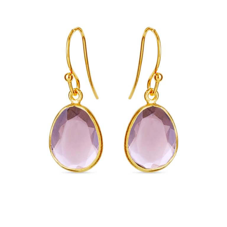 Skønne øreringe i forgyldt sølv med vedhæng af facetteret lys ametyst (11x13 mm).