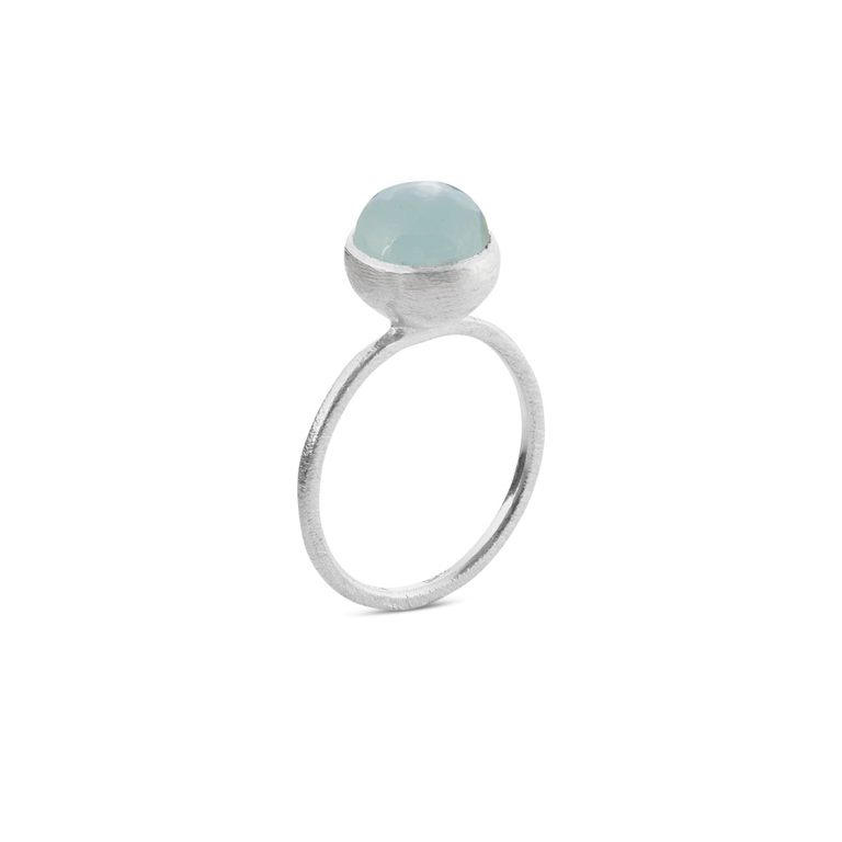 Smuk cabochon ring i sølv med 8mm. lyseblå krystal.