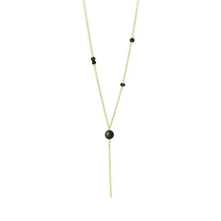 Susanne Friis Bjørner Y-halskæde forgyldt sølv m. sort agat (46,5+5 cm)
