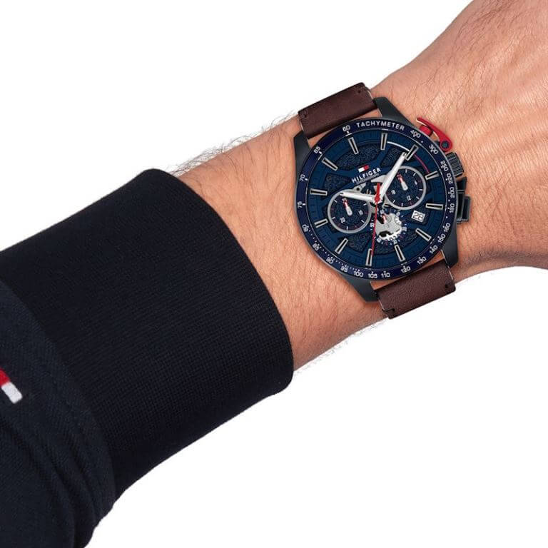 Tommy Hilfiger Bank herreur brun læderrem 44mm 5bar