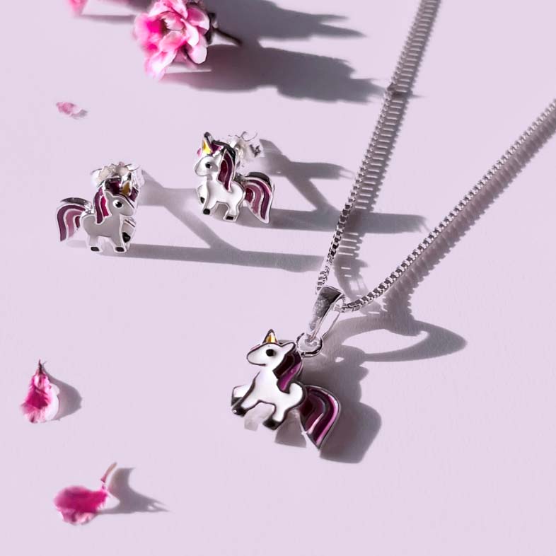 Dette fortryllende enhjørninge-vedhæng fra Scrouples er den perfekte gave til enhver lille pige, der elsker magi og eventyr. Lavet i sterlingsølv og dekoreret med lyserøde og hvide emaljedetaljer, bringer dette vedhæng en drømmende verden til live. Den medfølgende sølvkæde fuldender looket og gør det nemt at bære enhjørningen tæt på hjertet. Det er et smykke, der med garanti vil vække glæde og bringe et strejf af magi ind i hverdagen.