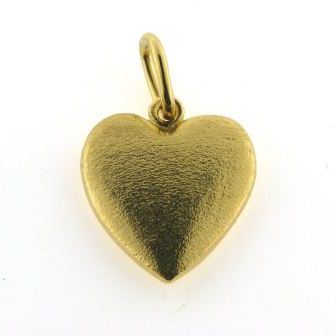 Vedhæng hjerte, massivt, ovalt øsken 925s. forgyldt overflade grov sand