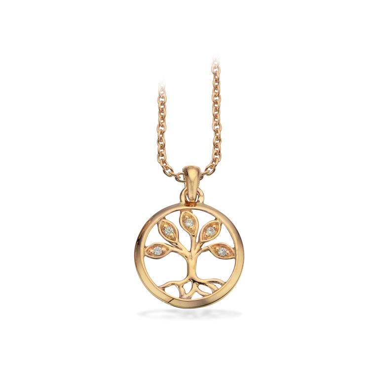 Vedhæng Livets Træ syn.zir. 8 kt. m/ sølvkæde