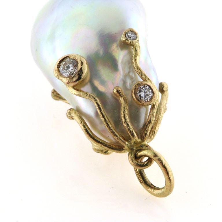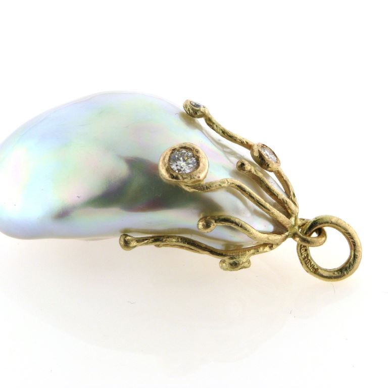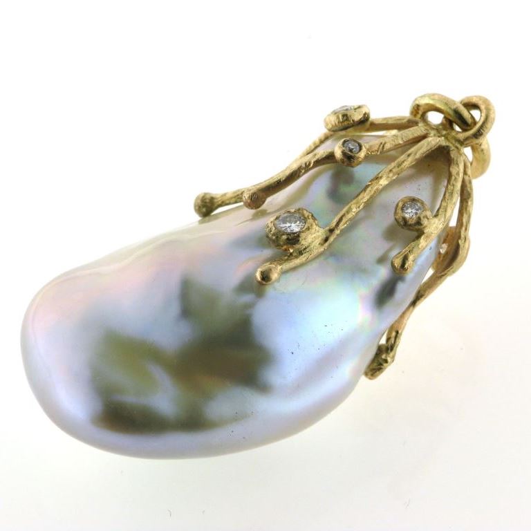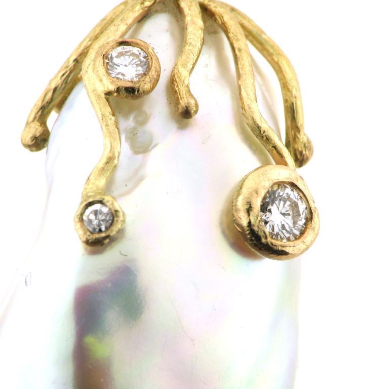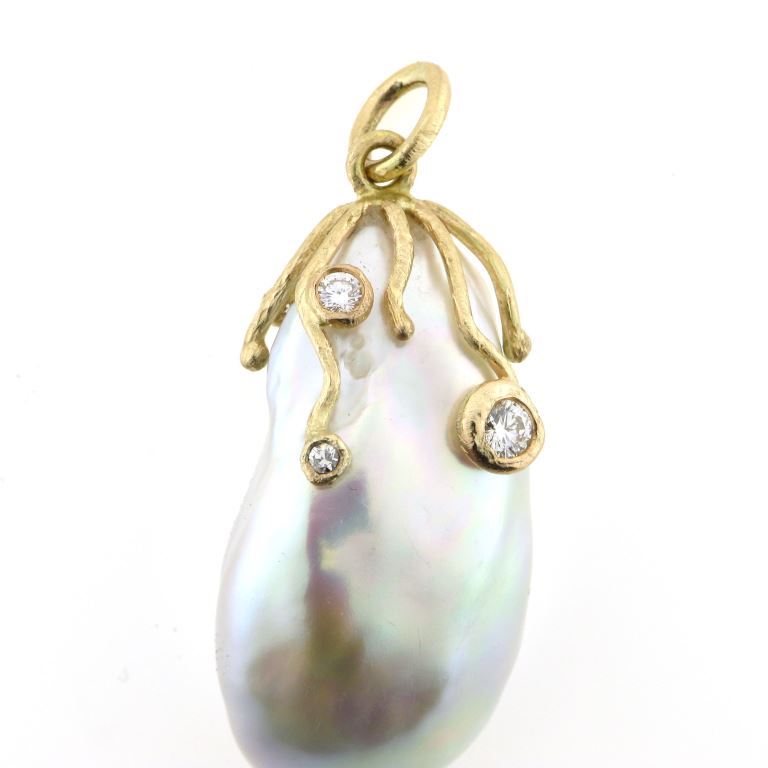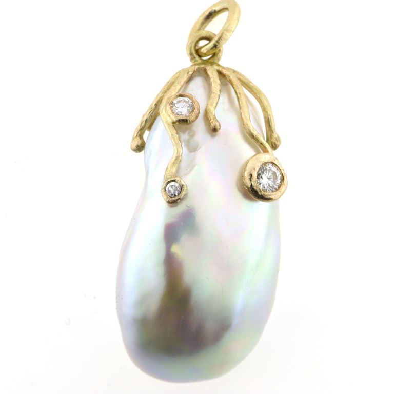 Vedhæng stor natur perle og 7 brill.14 kt.