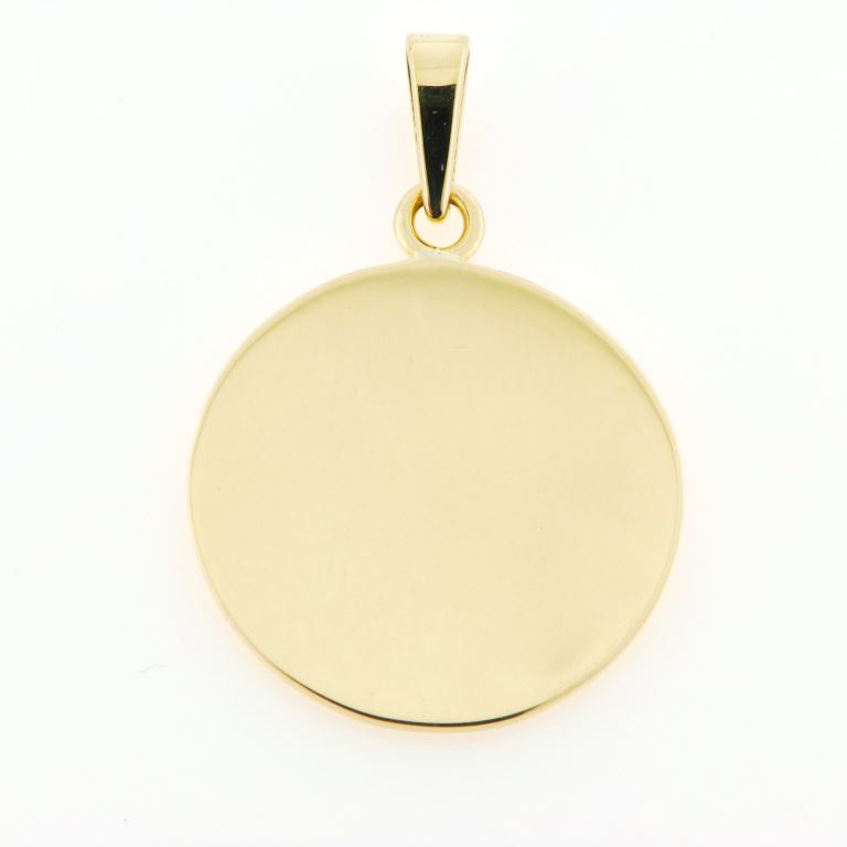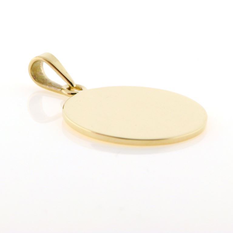 Vedhæng "tag" rund plade 8 mm. signet med øsken og patz øsken 8 kt.